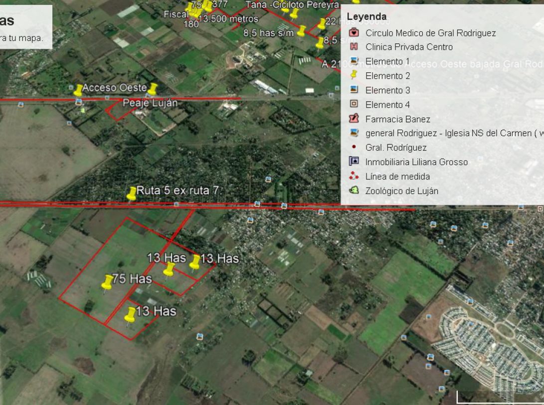 ✓ Distancias: A 500 metros de Ruta Nº 5 (ex Ruta Nº 7), a 1.000 metros de Estación La Fraternidad y a 5.000 metros de Estación Ciudad de General Rodríguez.A 3 km de Acceso Oeste